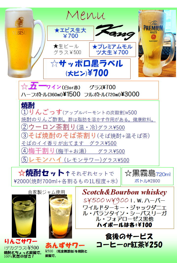 ★エビスジョッキ¥650・プレミアムモルツ大ジョッキ¥700・